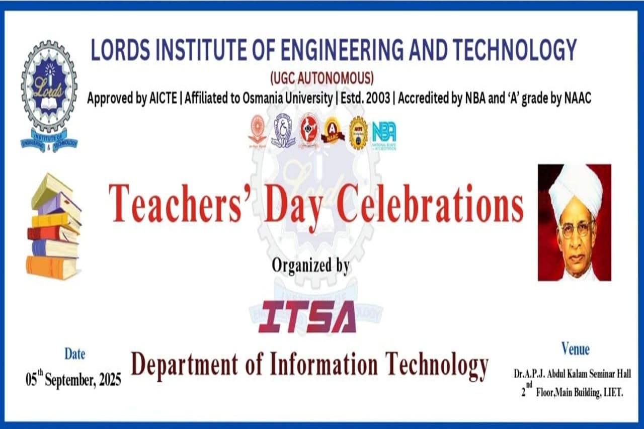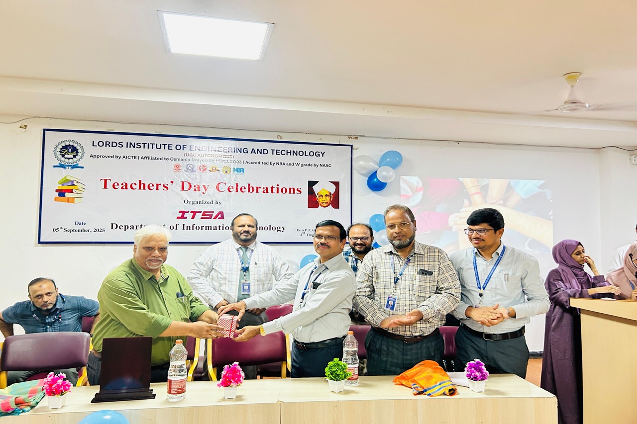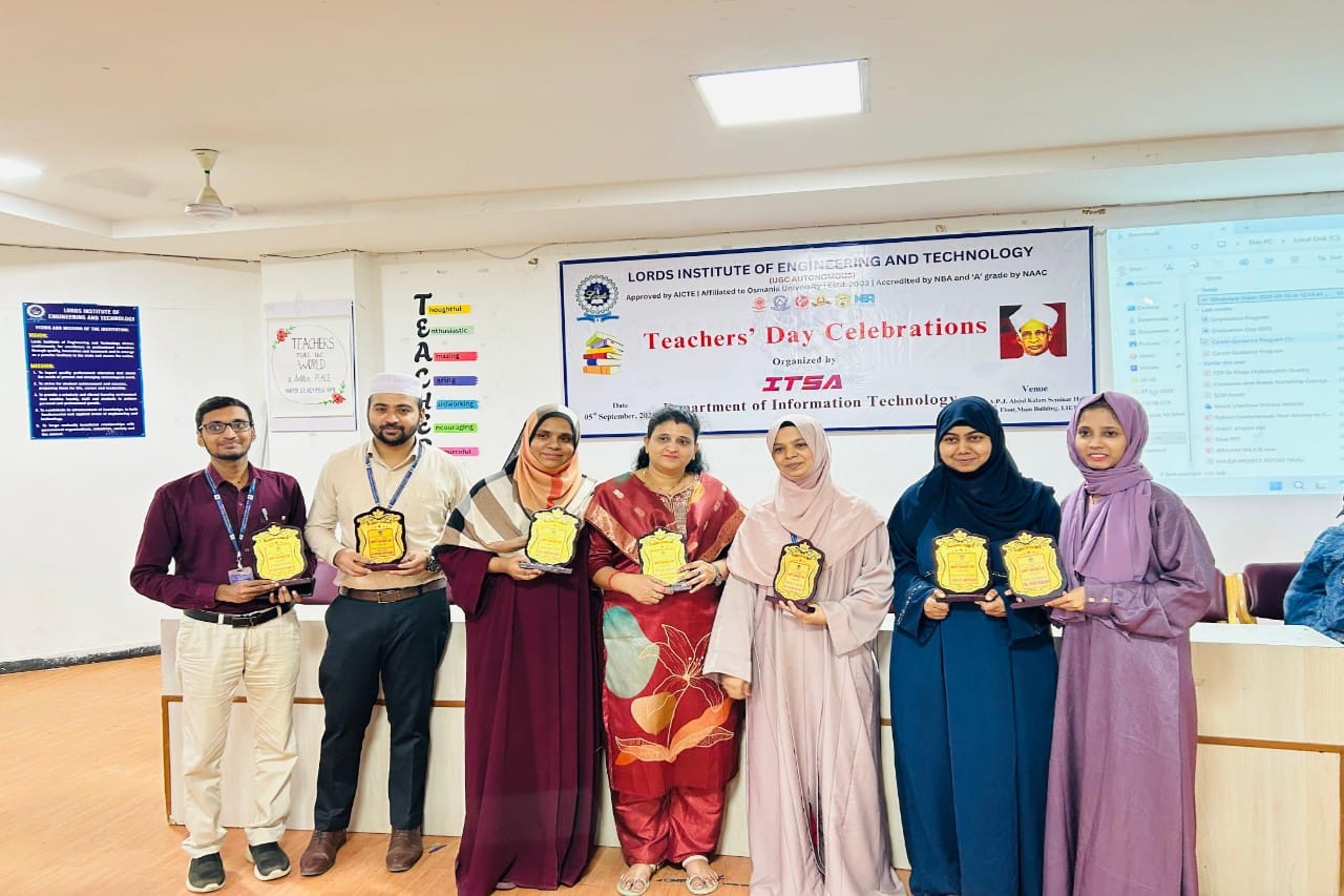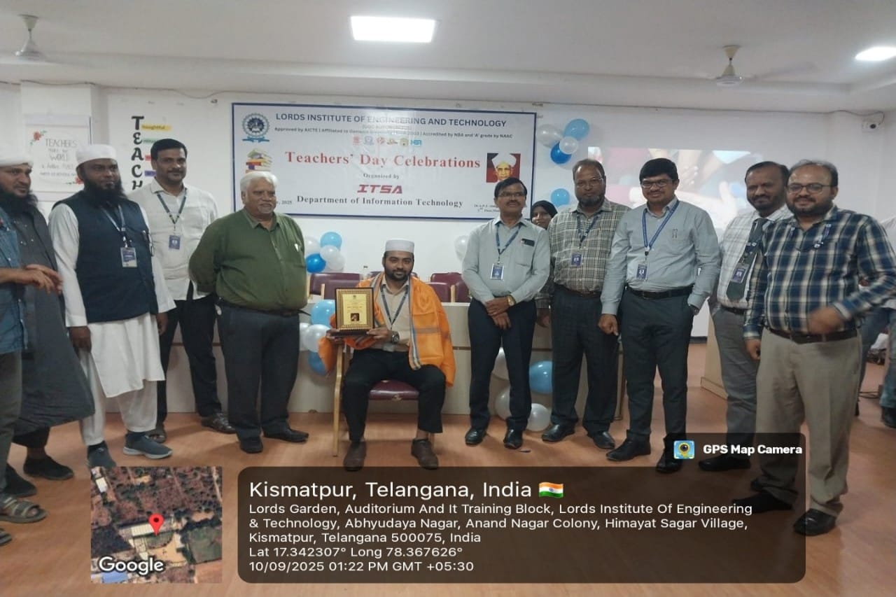 Description about the event: The Information Technology Students Association (ITSA) of the IT Department celebrated Teachers’ Day on 10th September 2025 in the Dr. A.P.J. Abdul Kalam Seminar Hall, 2nd Floor, LIET, with great enthusiasm and respect. The event was graced by the presence of Dr. Ravi Kishore Singh, Principal, LIET, along with the Directors, Deans, and Heads of Departments, whose participation added significance to the occasion. Students delivered heartfelt speeches as a tribute to their teachers, expressing gratitude for their guidance and dedication. The Principal, Directors, Deans, and HODs also shared their thoughtful words and experiences, highlighting the vital role of teachers in shaping students’ lives. A special highlight of the celebration was the recognition of Mr. Mohammed Mateen Ahmmed, who was honored as the Best Faculty of the Year 2025 from the department. All faculty members expressed their happiness and appreciated the efforts of ITSA in organizing such a meaningful event, while also encouraging them to continue conducting similar programs that celebrate and honor the teaching fraternity.