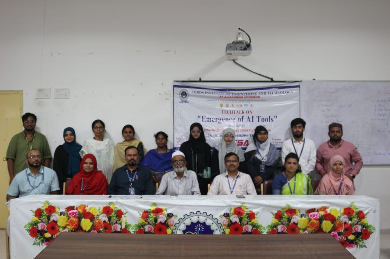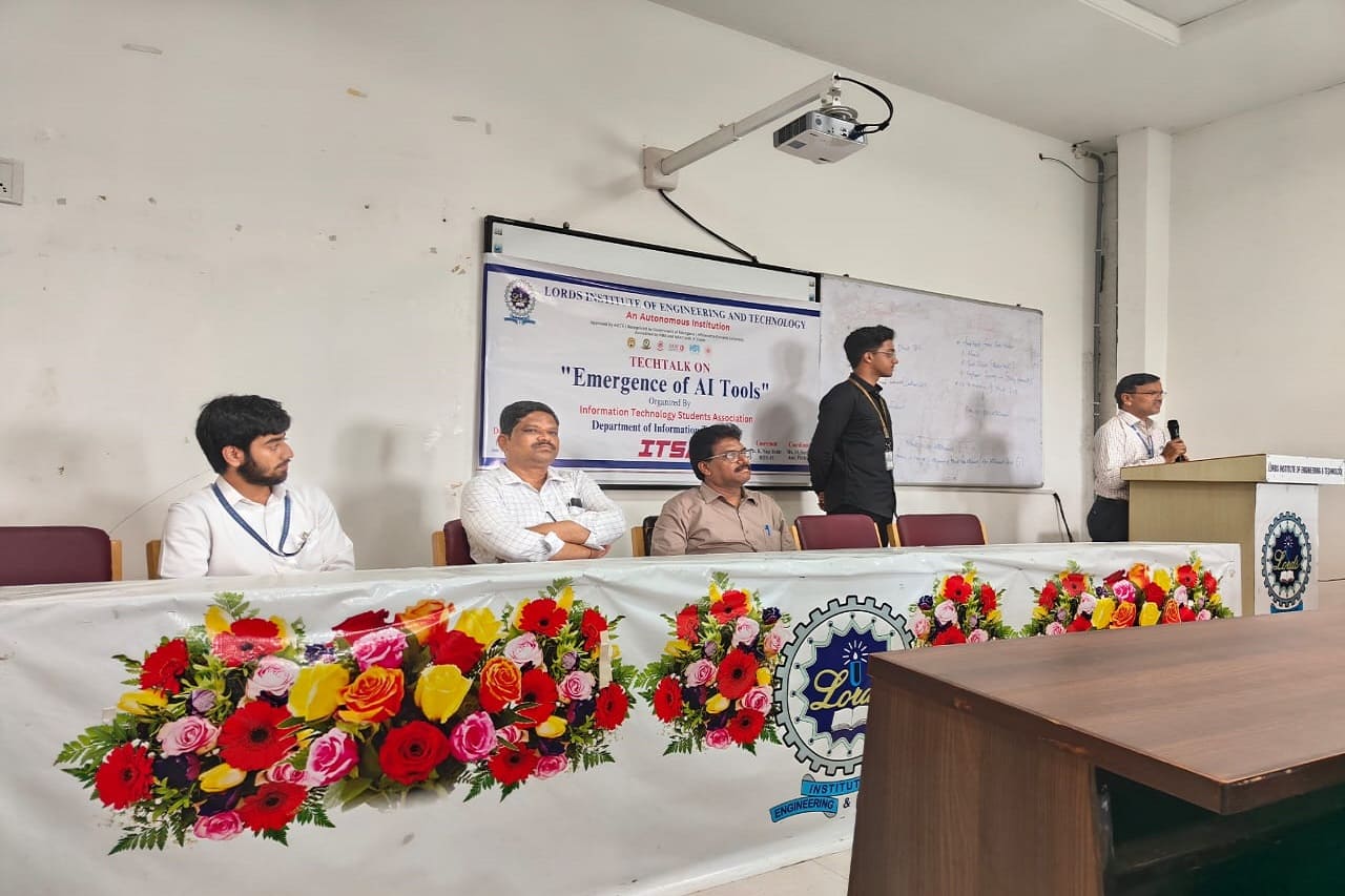 Description: A tech talk on “Emergence of AI Tools” was arranged by department of IT on 19/06/23 at Lords Institute of Engineering & Technology, Hyderabad. On a total of 65 students have participated in the event. The main objective of this tech talk was to provide some knowledge & Hands on session of AI Tools which will be useful for their academics and placements.The convenor of the event Dr.K.Nagi Reddy, HOD IT welcomed all the participants, resource persons,Principal ,Deans & Directors of LIET who have participated towards this successful event.