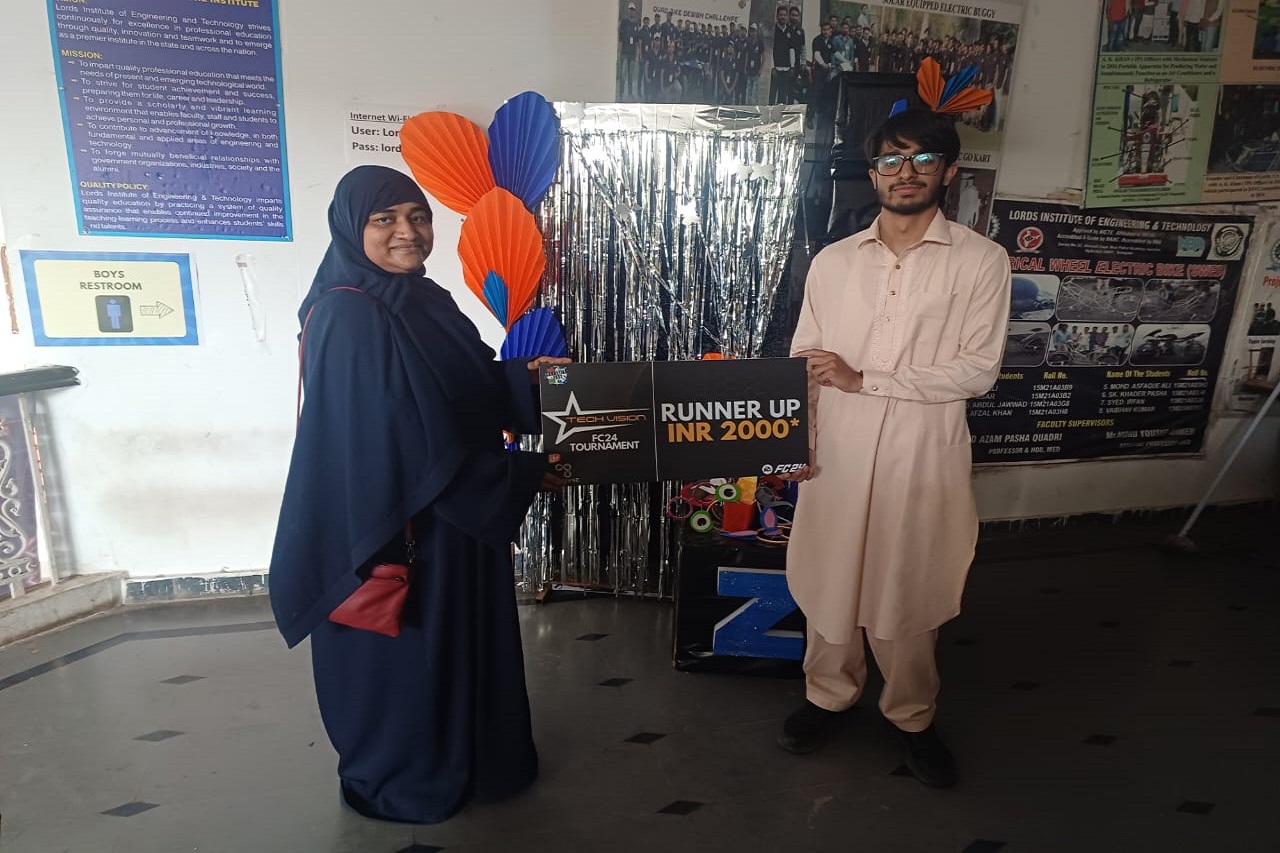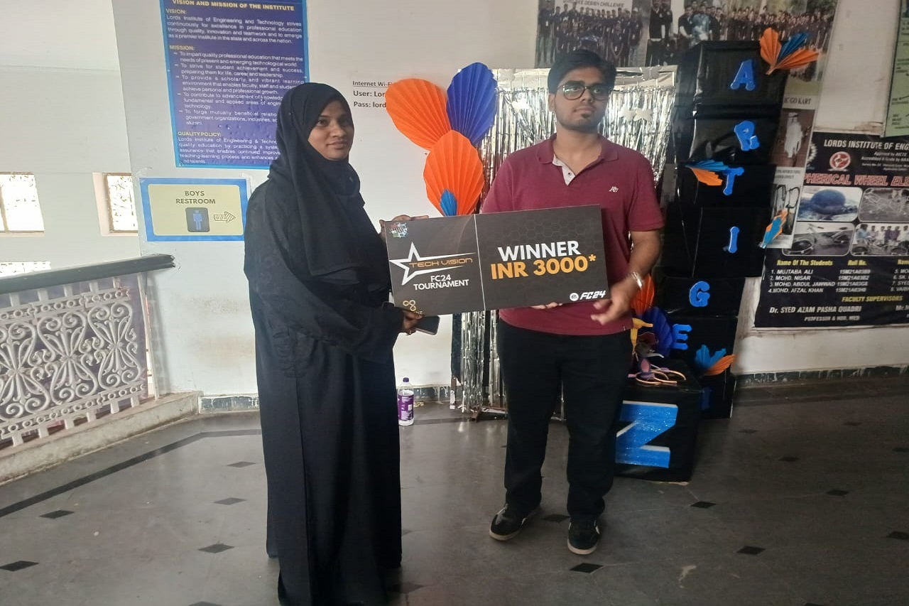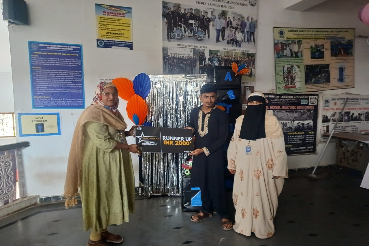 Description: Sanketika 2025’s Tech Vision , a Technical and Non-Technical Fest organized by the CSE-AIML department of Lords Institute of Engineering and Technology, was held on April 24th and 25th, 2025. Sponsored and judged by Dr. Arif Mohammed Abdul, Associate Professor in the CSE department at GITAM University, the event witnessed an enthusiastic turnout of 308 students from LIET and other colleges. Events such as Code Faceoff (held in Lab 309B), E-Sports (in Rooms 102, 103, 104 on the 1st floor), and the Torque Talk (Auto Fest) at Lords Ground provided a dynamic platform for students to showcase their talents in coding (Python, C++, Java) and various technical and creative domains. Winners and active participants were recognized for their innovation and technical excellence with cash prizes, trophies, and certificates.