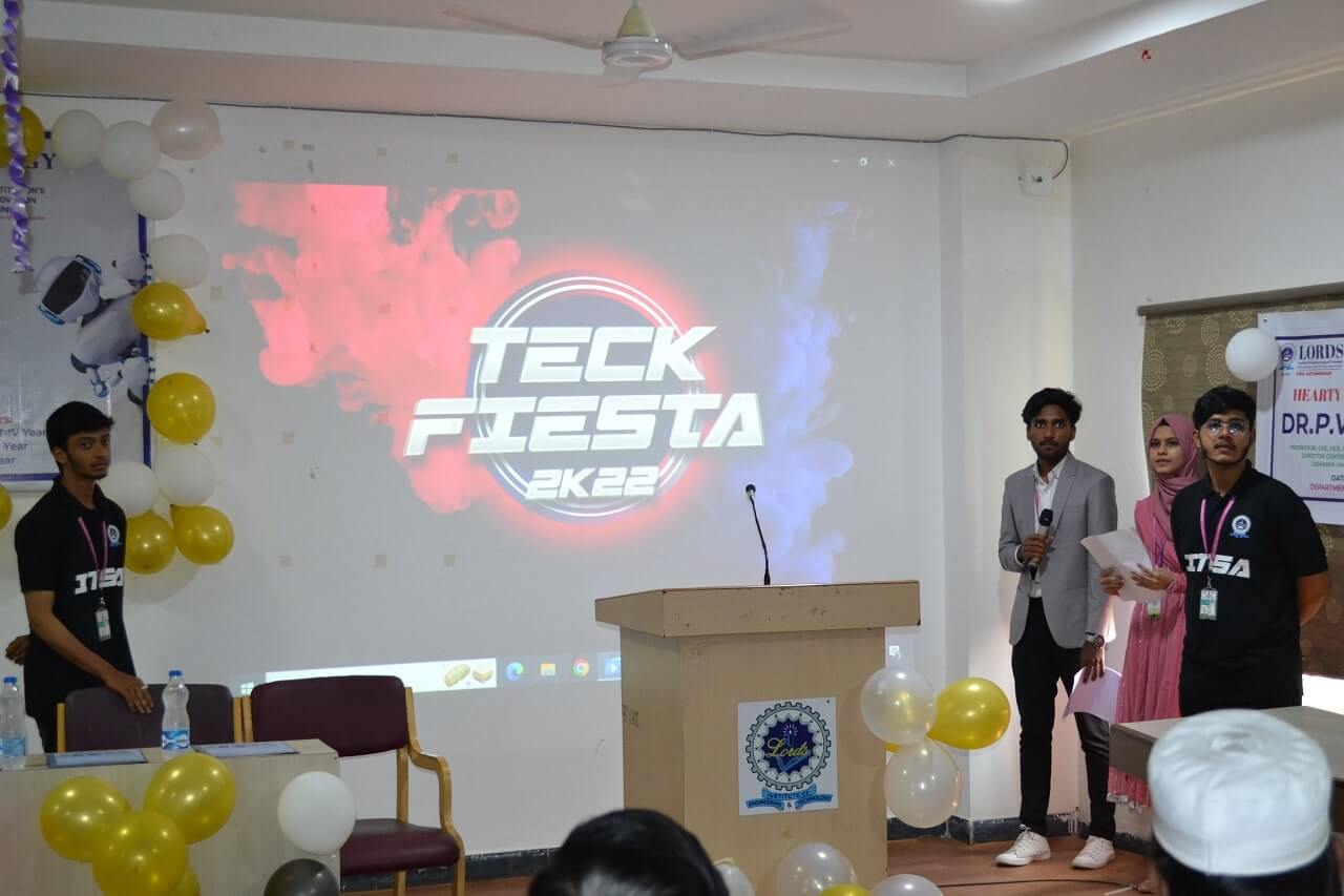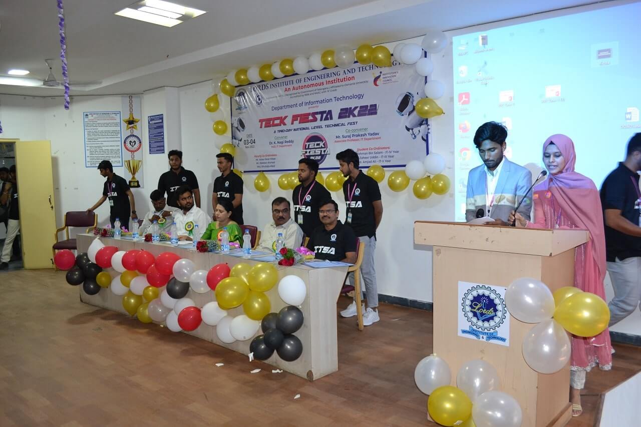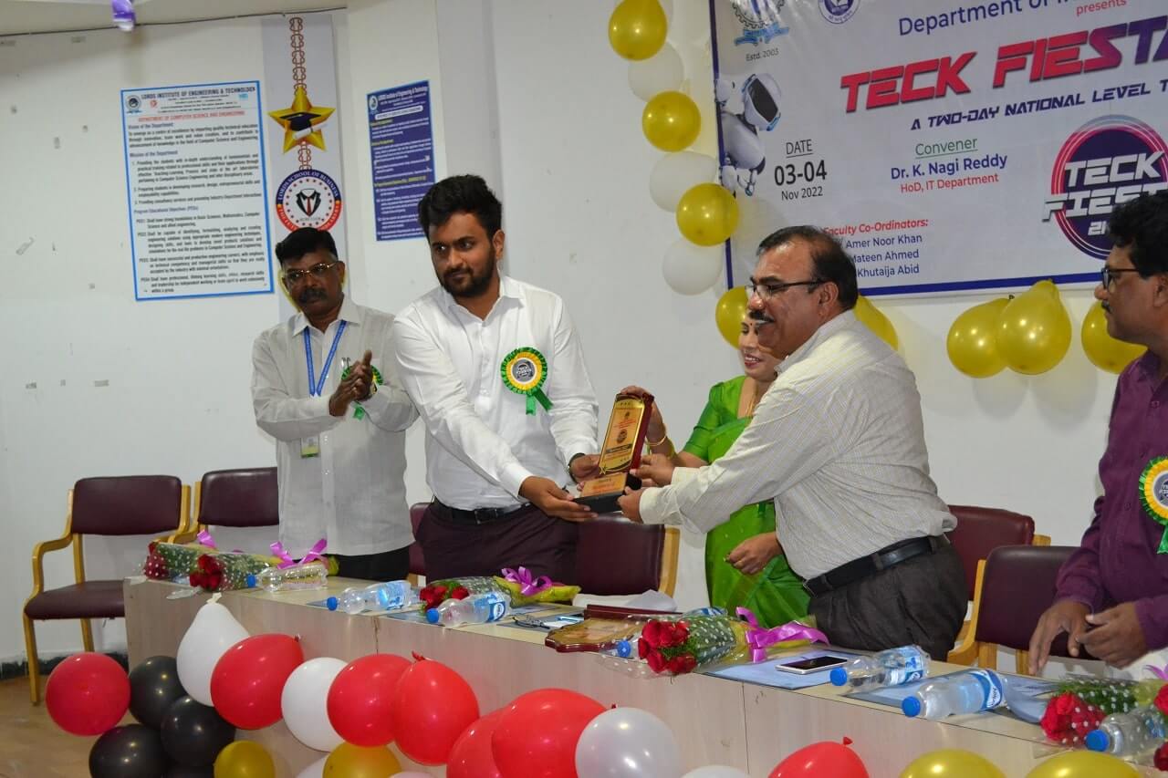 Description: A Two Day National Level Technical Fest “TECKFIESTA 2K22” was Organized by I.T. Department On 3rd & 4th November 2022 at Lords Institute of Engineering and Technology, Hyderabad. In these two days of “IT Tech Fest” total 917 students from various colleges have participated in the Technical and Non-Technical Events. The convener of the event is Dr.K.Nagi Reddy, Professor and Head, Department of I.T.