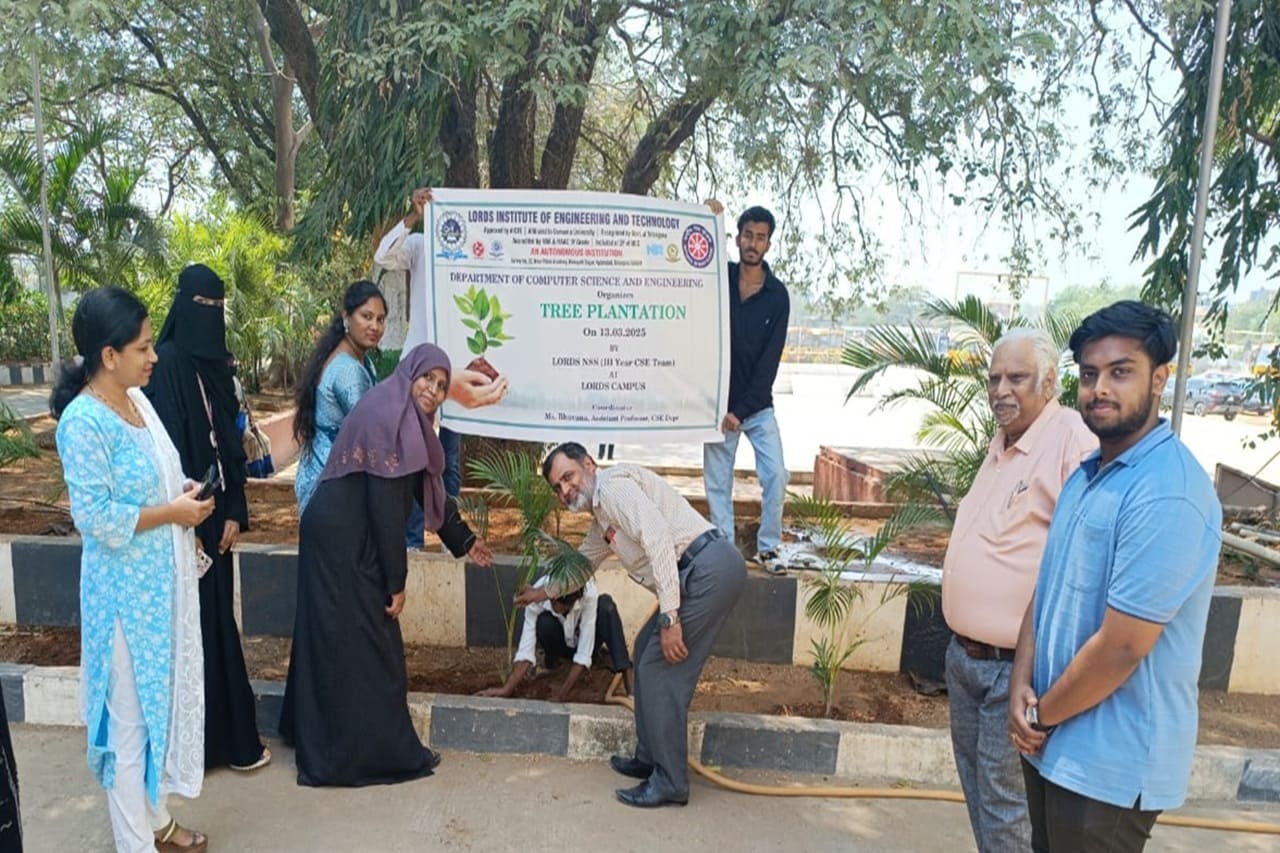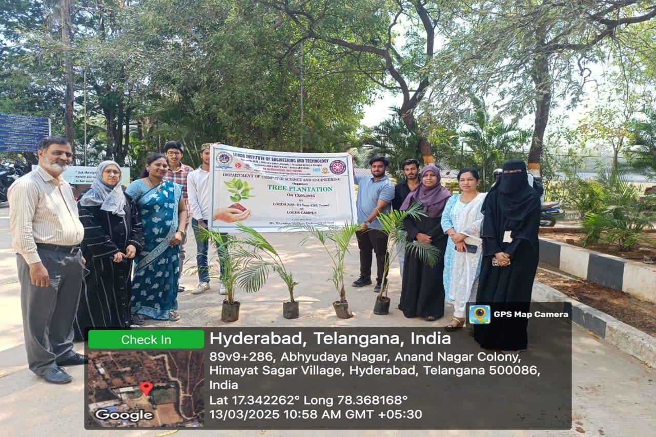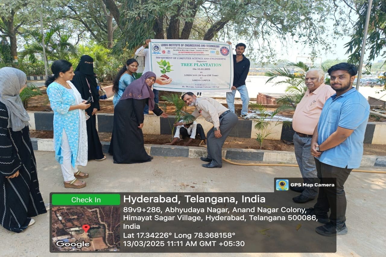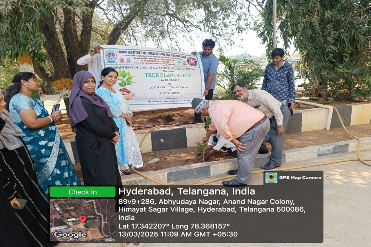 Description about the Event:(50 Words): Department of CSE was organized a “Tree Plantation “by LORDS NSS (III RD Year CSE Dept) at Lords Campus. Associate Hod -CSE has welcomed guest. Dr. Ravi Kishore Singh, Principal LIET, Dr T. k. Shaik Shavali Hod- CSE has graced the event at lords campus. Dr. T.K. Shaik Shavali, Head of the Department, CSE, expressed his appreciation for the concept of Tree Plantation and importance of this event that brings the nature lovers around the world together to plant trees and make a positive environmental impact. Overall, the event proved to be an enlightening experience for students, faculties etc .
