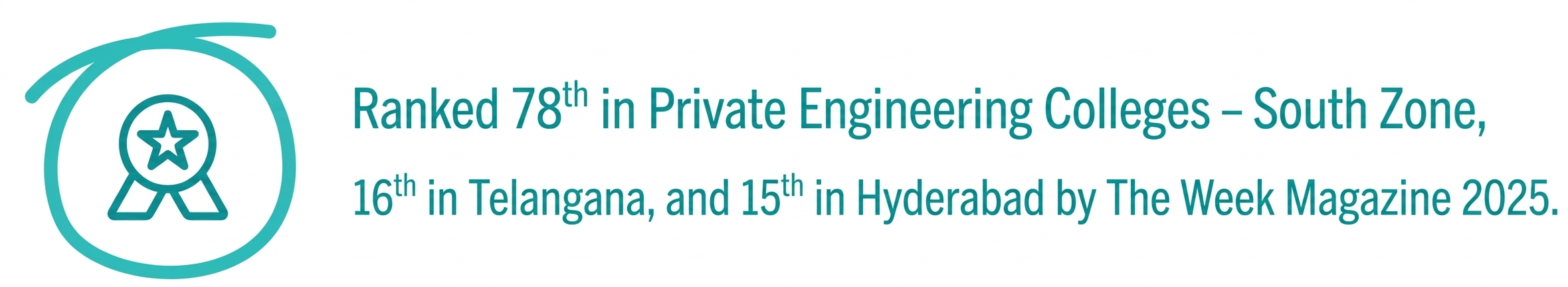 - Ranked 78th in Private Engineering Colleges – South Zone, 16th in Telangana, and 15th in Hyderabad by The Week Magazine 2025.