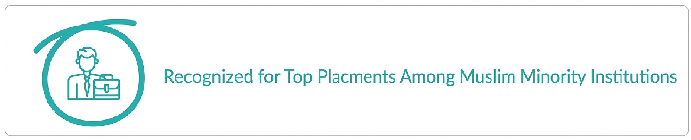 - Best placements among Muslim Minority Engineering Institutions; Companies including Tech Mahindra, Cognizant, Infosys, Accenture, Wipro, TCS, Amazon, Byju’s, Genpact, Mindtree, Capgemini, HCL, Hexaware, BOSCH etc recruited our students.