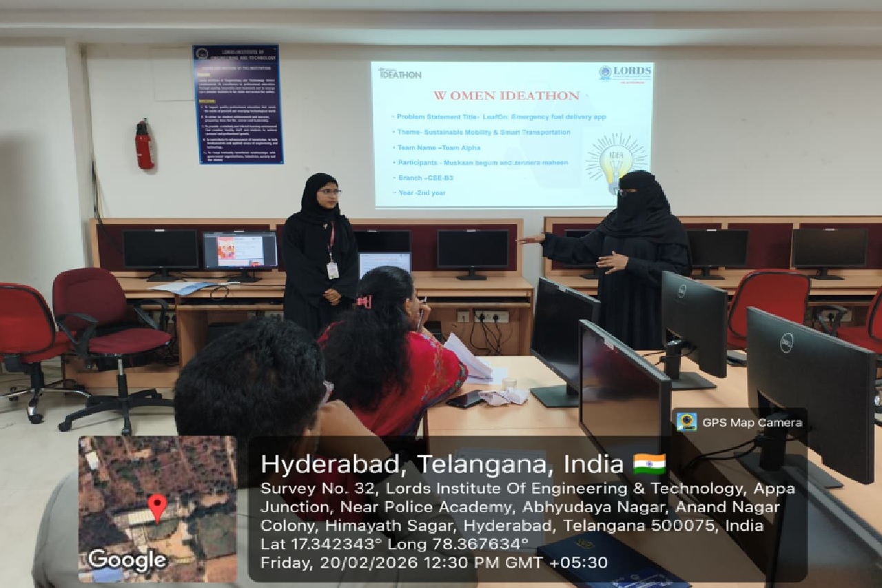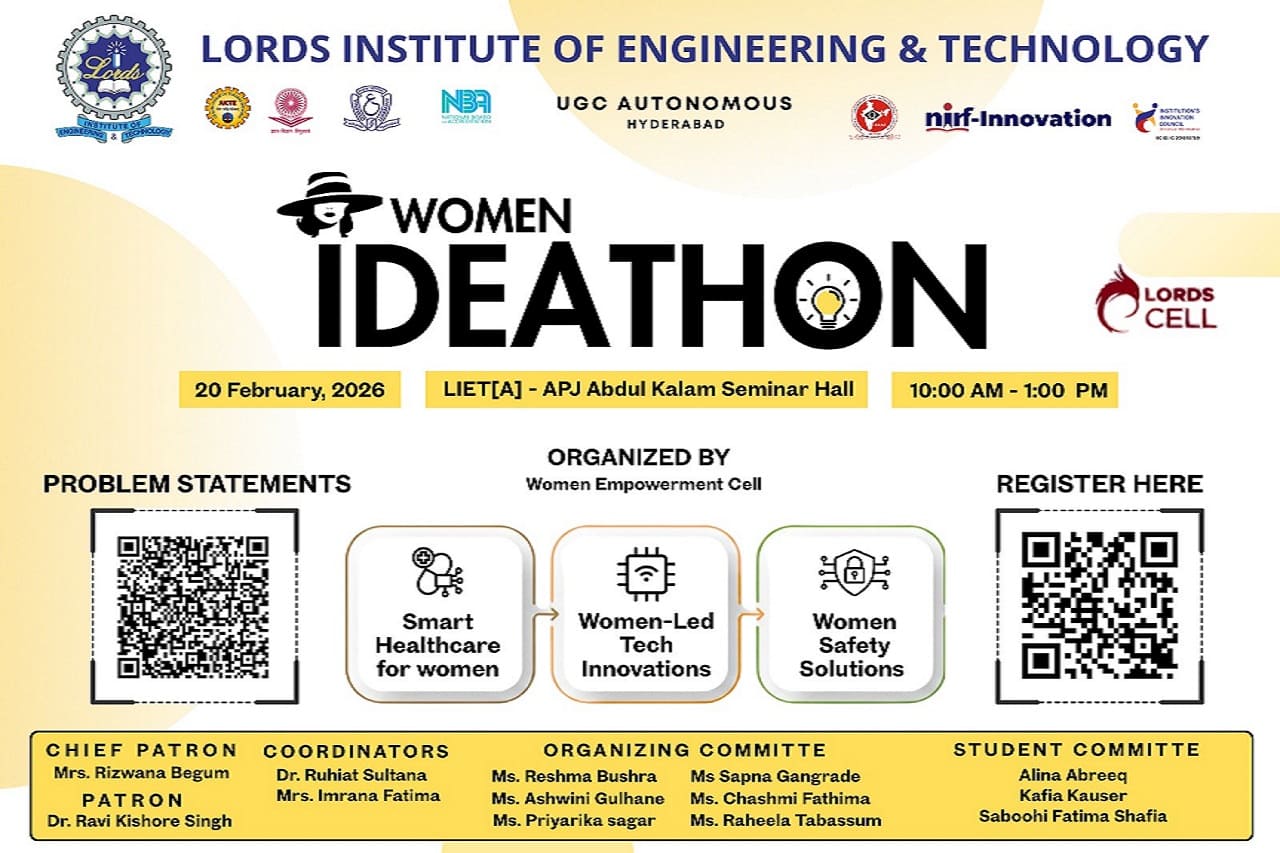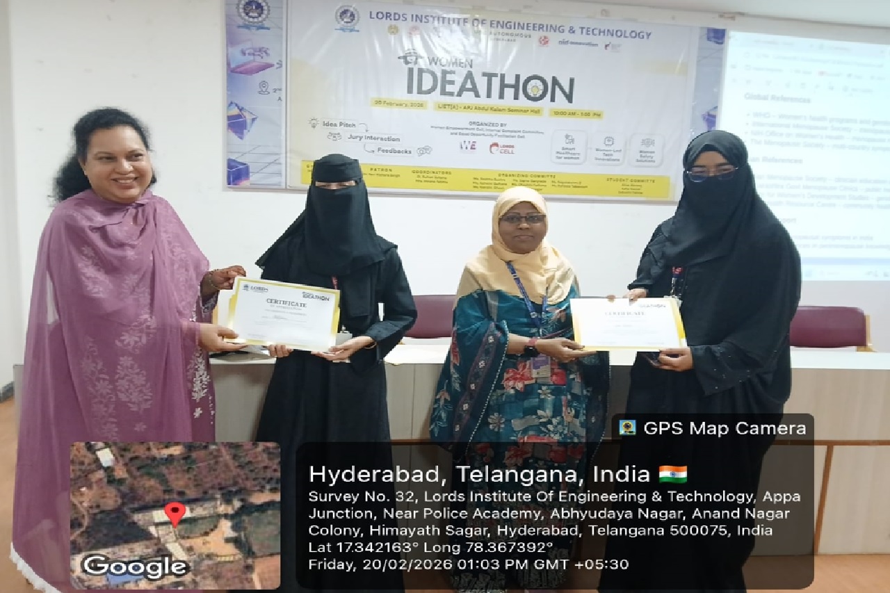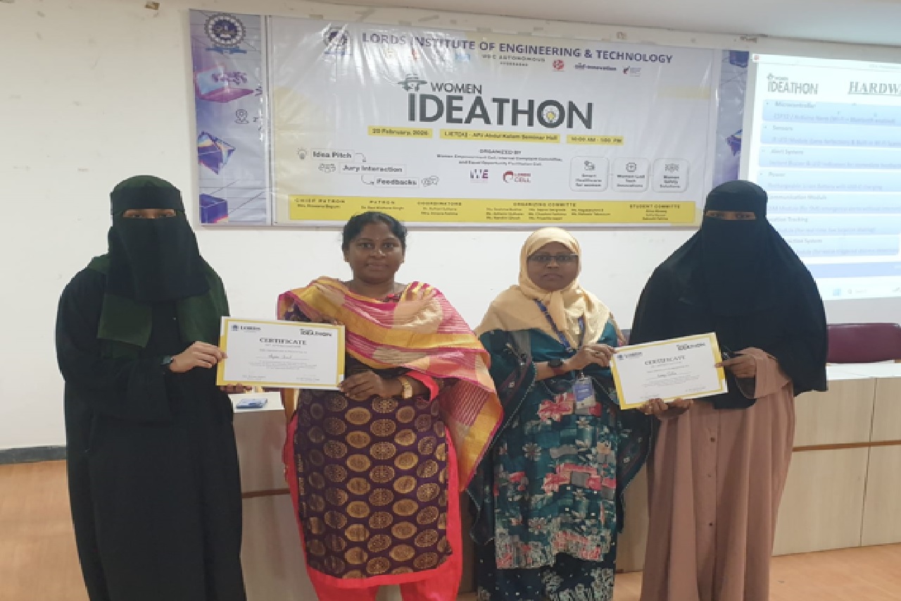 Description about the event: On 20th February 2026, Lords Institute of Engineering and Technology hosted Women Ideathon, organized by the Internal Complaint Committee/Equal Opportunity Cell/ Women Empowerment Committee.