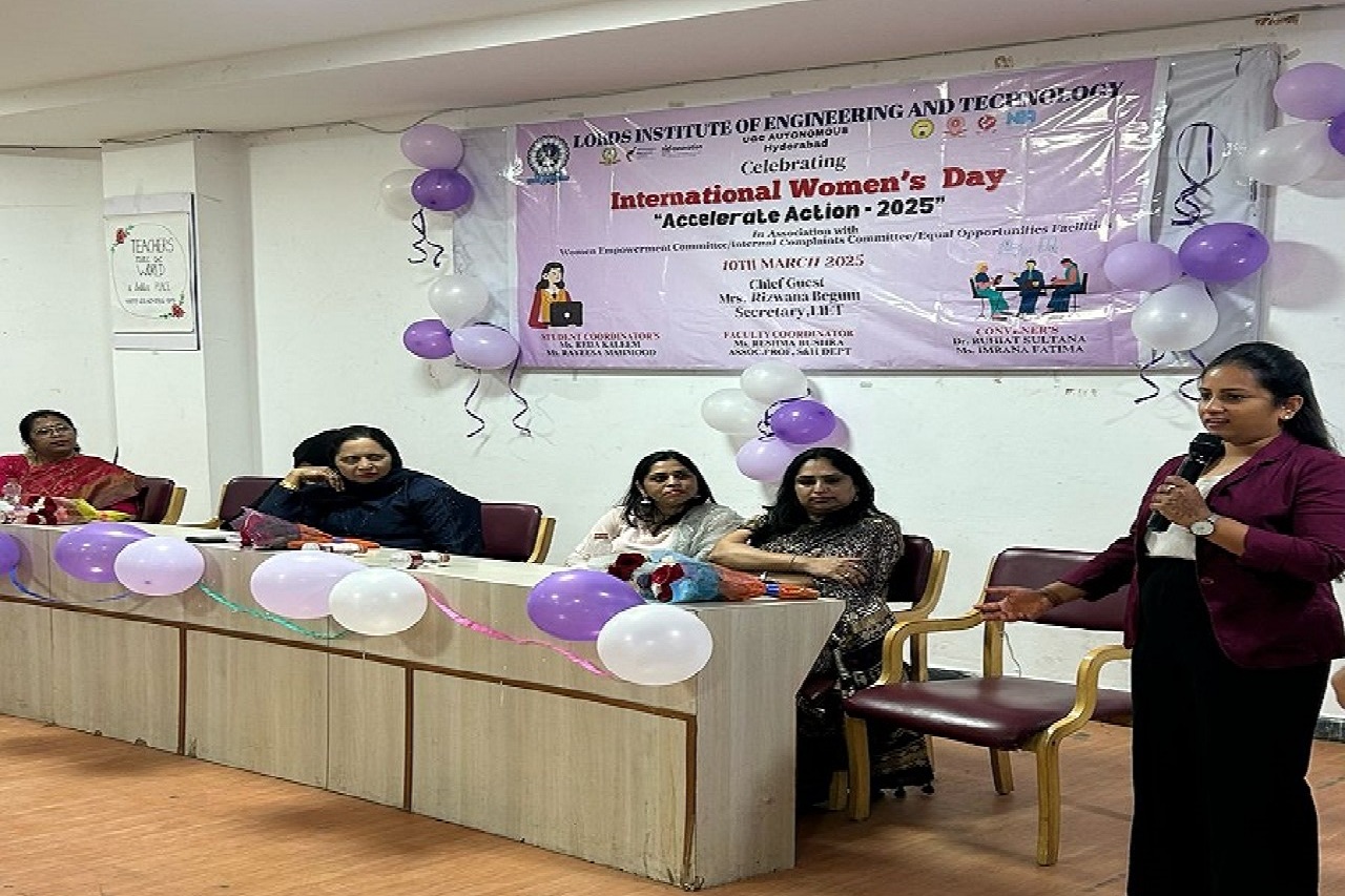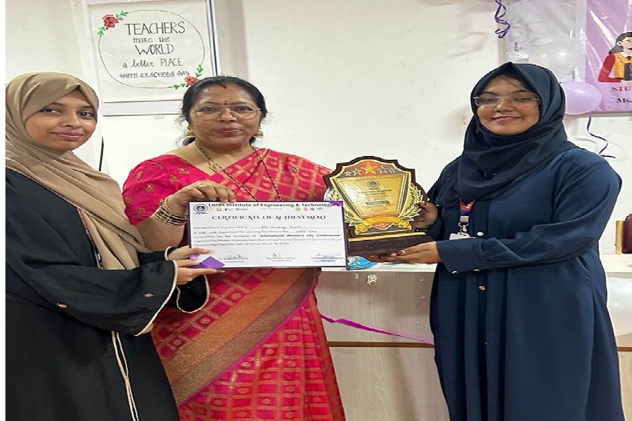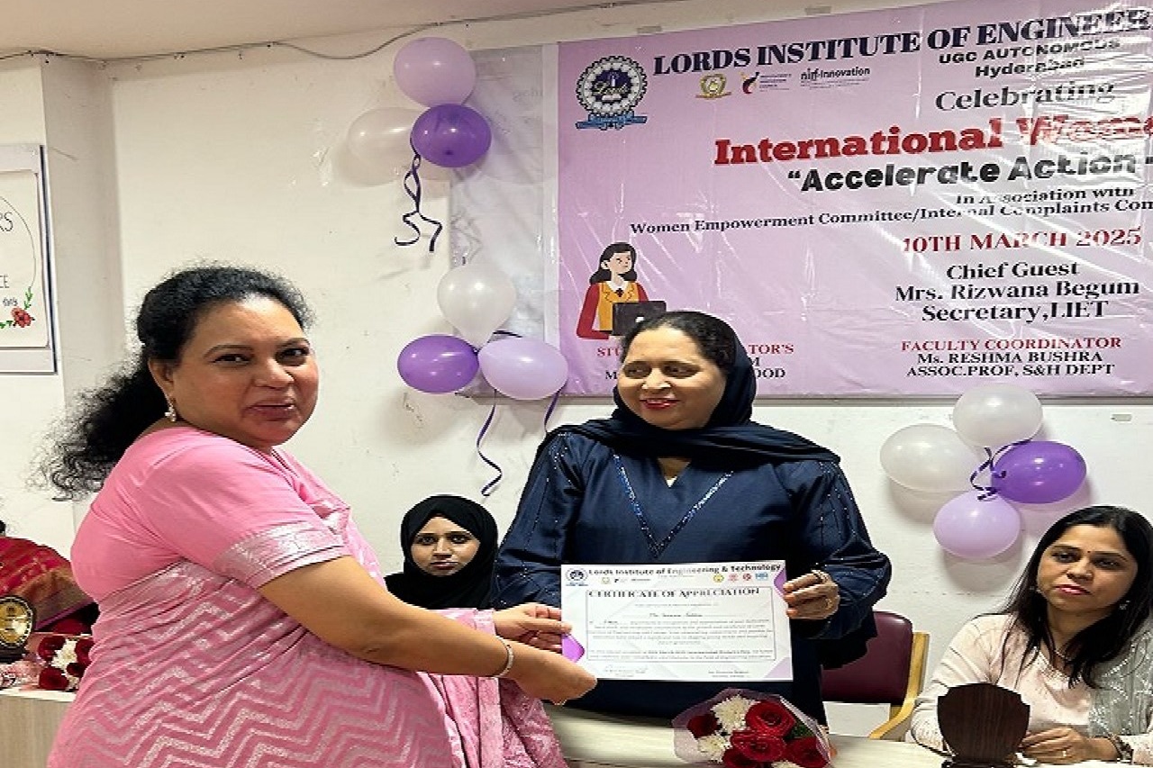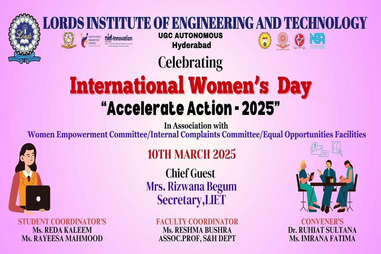 Description: Lords Institute of Engineering and Technology (A) celebrated International Women’s Day 2025 with great enthusiasm on 10th March 2025. The event was graced by our Chief Guest, Ms Rizwana Begum, Honourable Secretary, LIET, and Mrs Sana Syeeda, Additional Joint Secretary, along with a Guest of Honors were all successful women entrepreneurs. They all shared their inspiring journey, motivating our girl students to innovate and pursue entrepreneurship. As part of the Women’s Day Celebration 2025, a prize distribution ceremony was held to honour the winners of various competitions conducted for girl students. Additionally, the highlight of the event was the launch of the Women’s Magazine, showcasing the achievements, stories, and contributions of women in our institution, inspiring future generations.