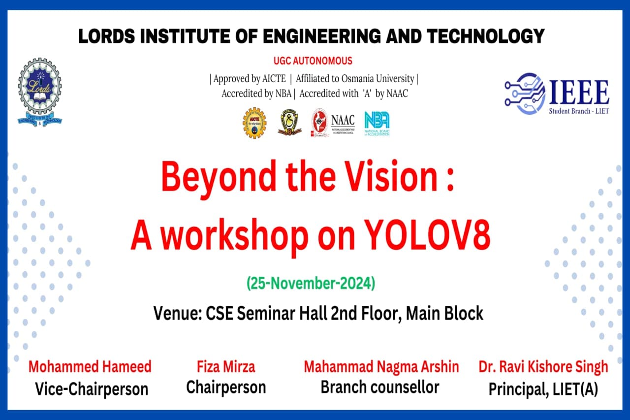 Description about the event: The IEEE Student Branch of LIET hosted an engaging workshop on YOLOV8, empowering participants with cutting-edge computer vision skills. Led by 3rd year student speakers, the hands-on session covered object detection techniques and real-world applications of this powerful AI technology.