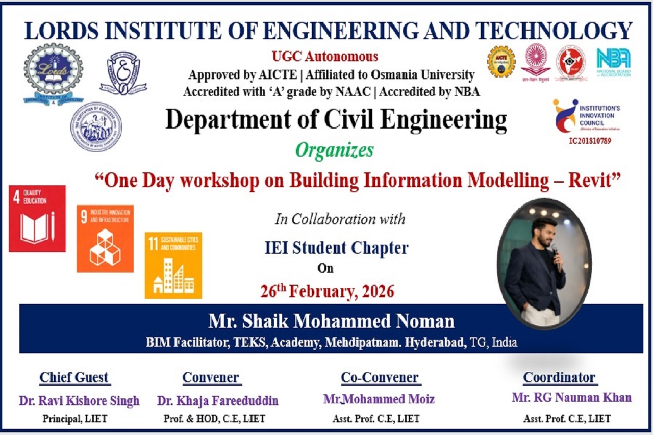 Description about the event (50 Words): A one-day workshop on Building Information Modelling (BIM) using Revit was organized jointly by the Department of Civil Engineering & Mechanical Engineering to introduce them to modern digital construction practices. The session covered basic modelling techniques, architectural components, and project visualization. Participants gained hands-on experience in creating building models and learned the importance of BIM in improving planning, coordination, and construction efficiency in the construction industry.