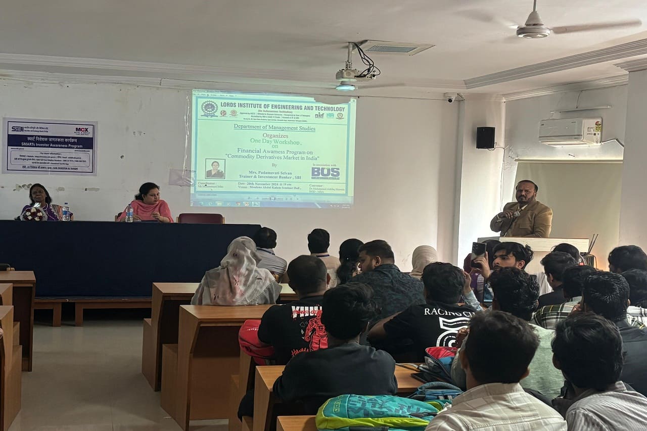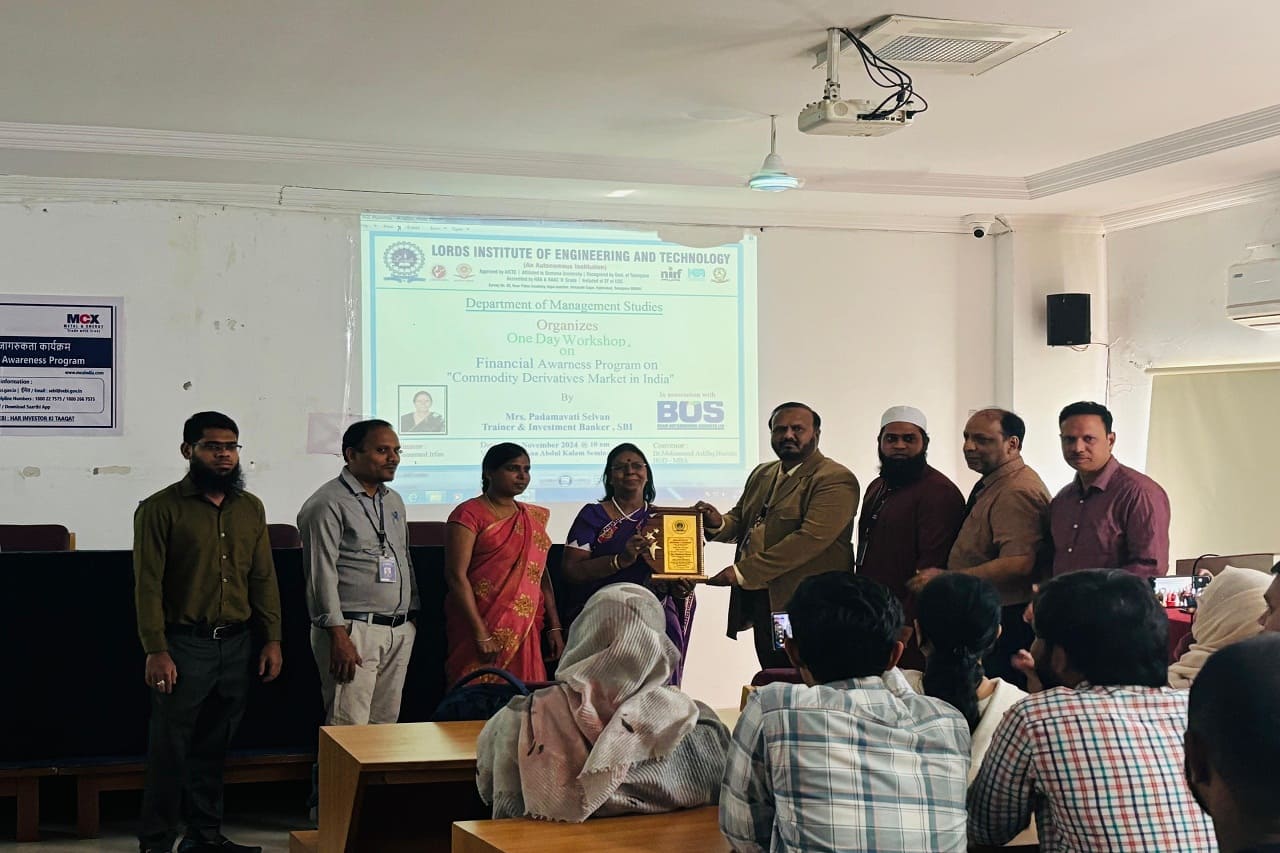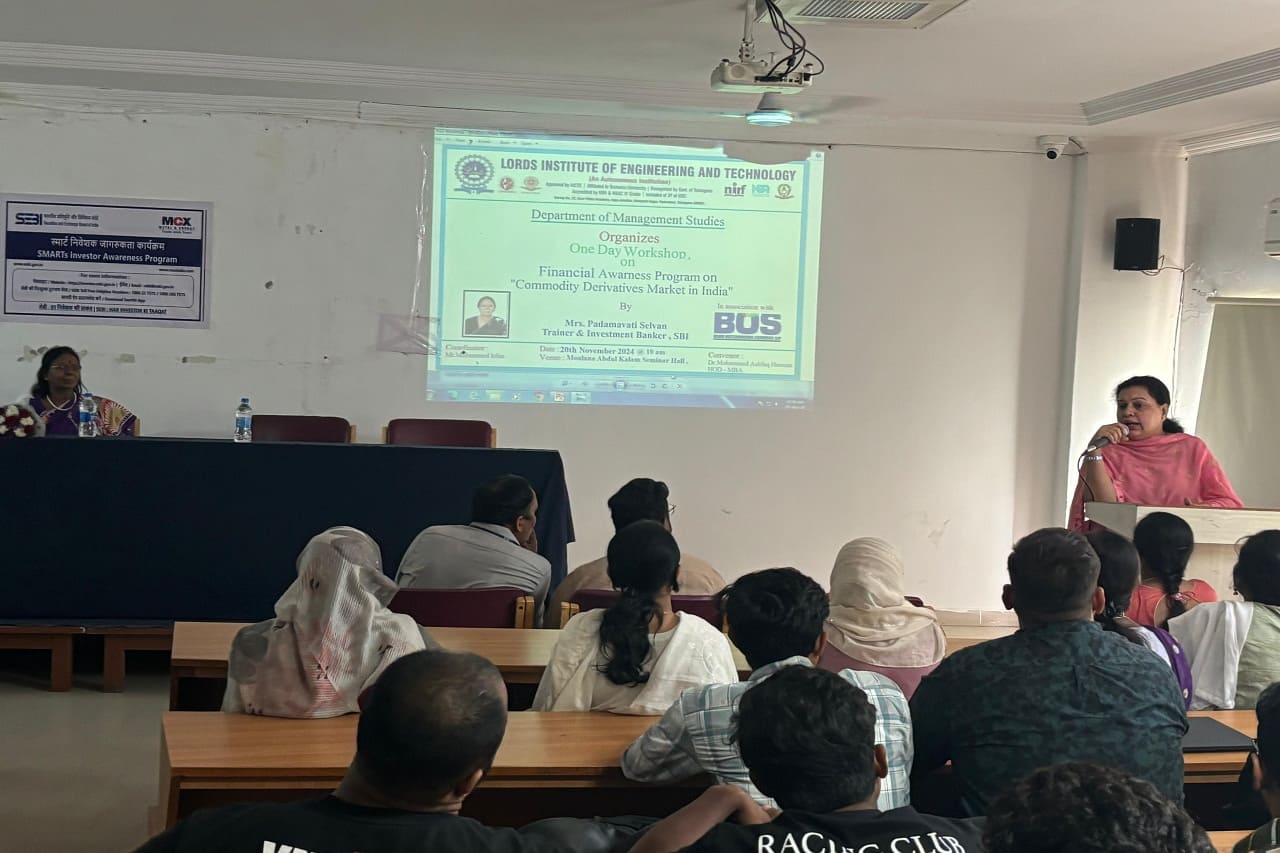Description about the event: Lords School of Business, under Dr. Ashfaq Hussain, HoD and convenor and Mr. Mohammad Irfan co-ordinator, organized an โIndustry Expert workshop on Financial Awareness program on commodity derivatives on 20th November, 2024 to help MBA students gain knowledge about financial markets . The resource person, Ms Padmavathi Selvan , a Freelance Training at State Bank of India, Hyderabad, a , specializes in commodity derivatives in present financial markets in India,with extensive financial industry has delivered the valuable inputs to students on financial Work.