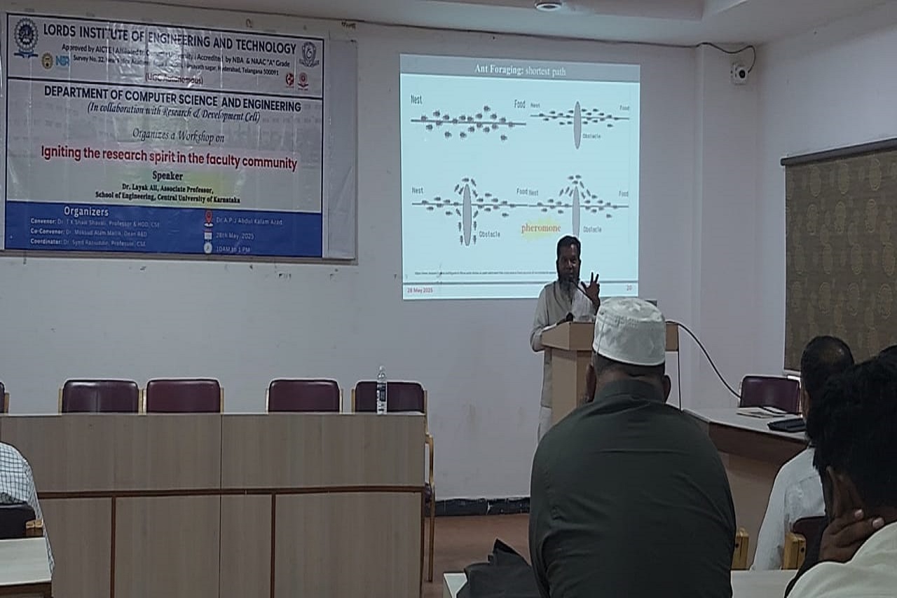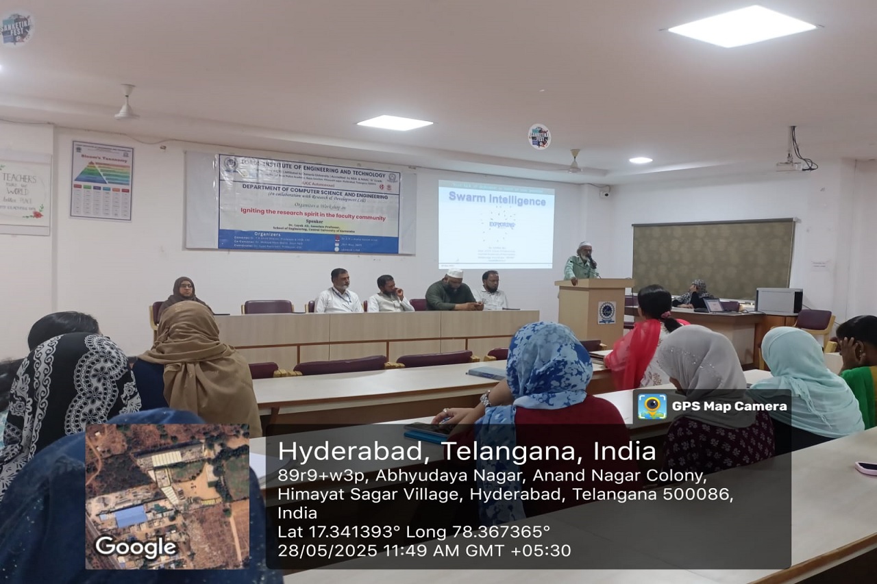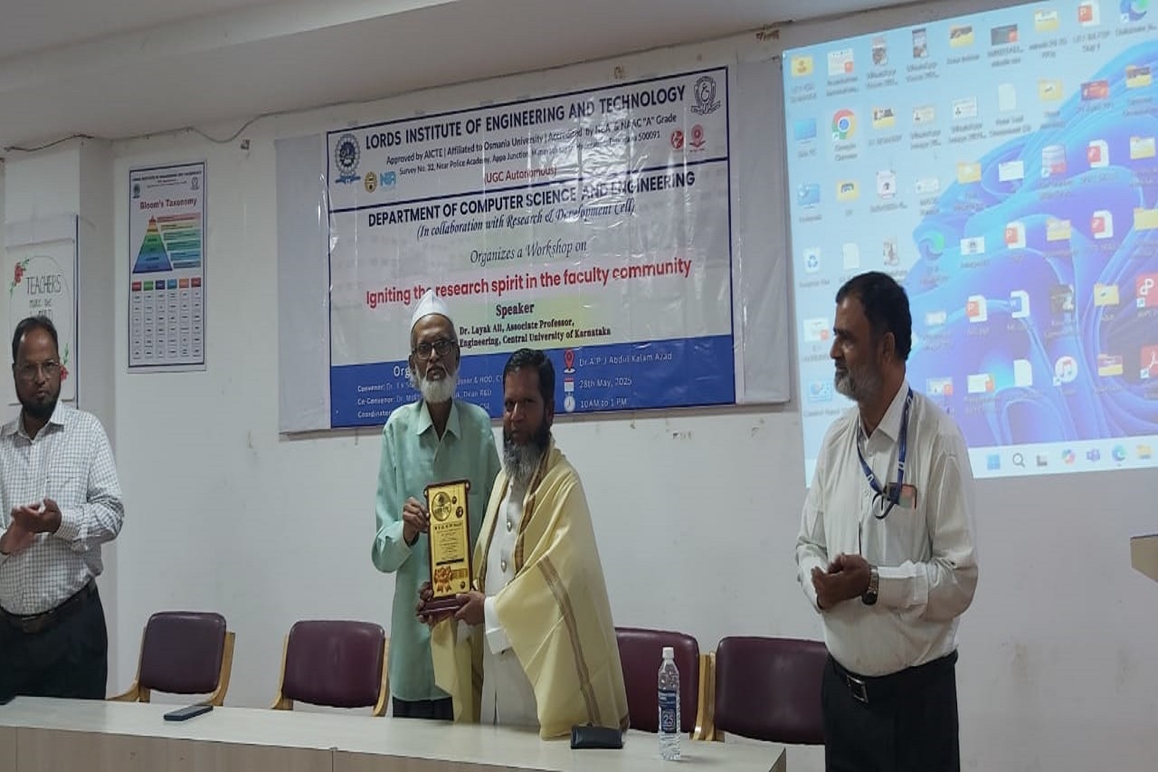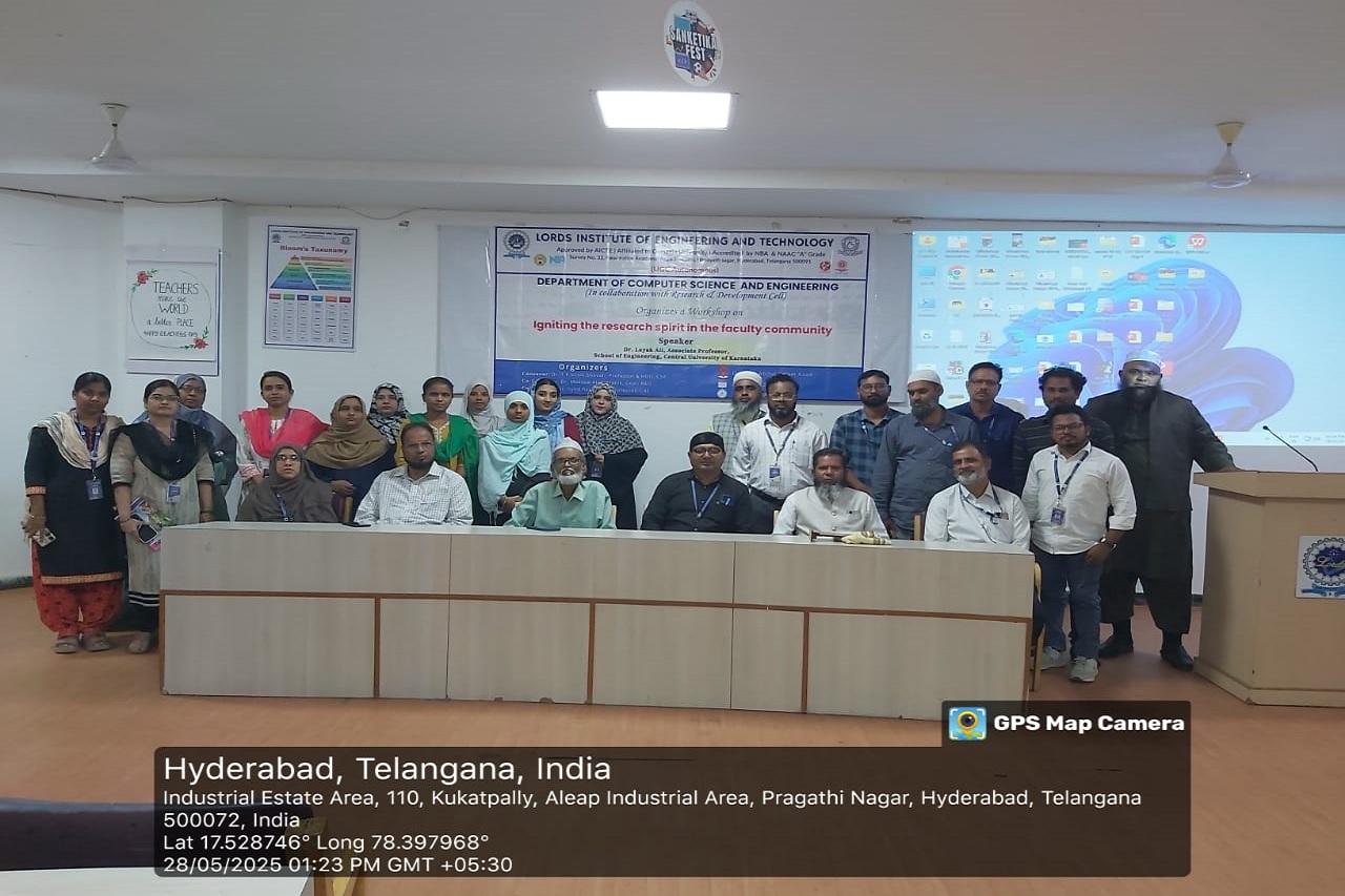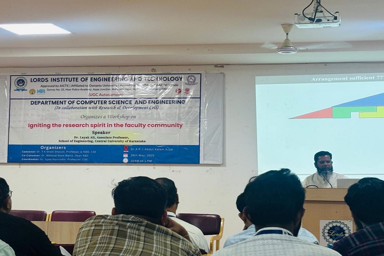 Description: The Department of CSE successfully organized an insightful workshop on “Igniting the research spirit in Faculty Community” on May 28, 2025, aimed at motivating faculty members toward research excellence.