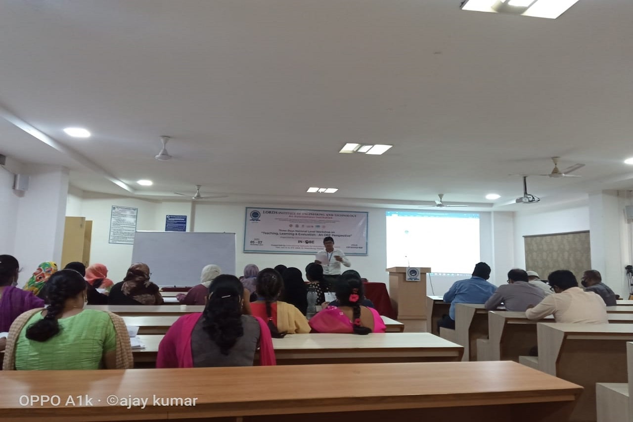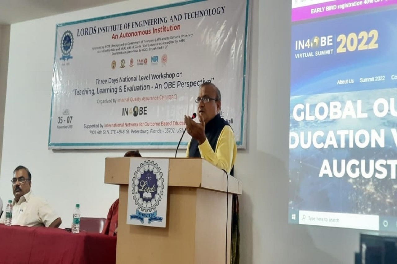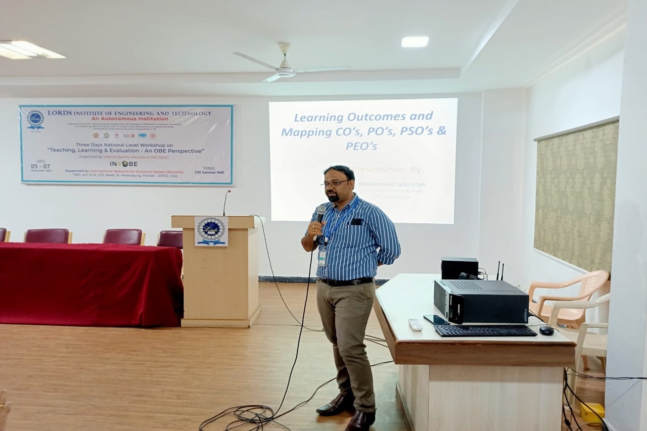 Description: Internal Quality Assurance Cell (IQAC), Lords Institute of Engineering and Technology (Autonomous), Hyderabad organized a 3-Days National Level Workshop on Teaching, Learning & Evaluation – An OBE Perspective for the faculty members of various institutions across the country on topics such as OBE in Accreditations, Bloom’s Taxonomy, CO-PO/PSO Mappings, Curriculum Gaps, Attainments, Rubrics and Automation