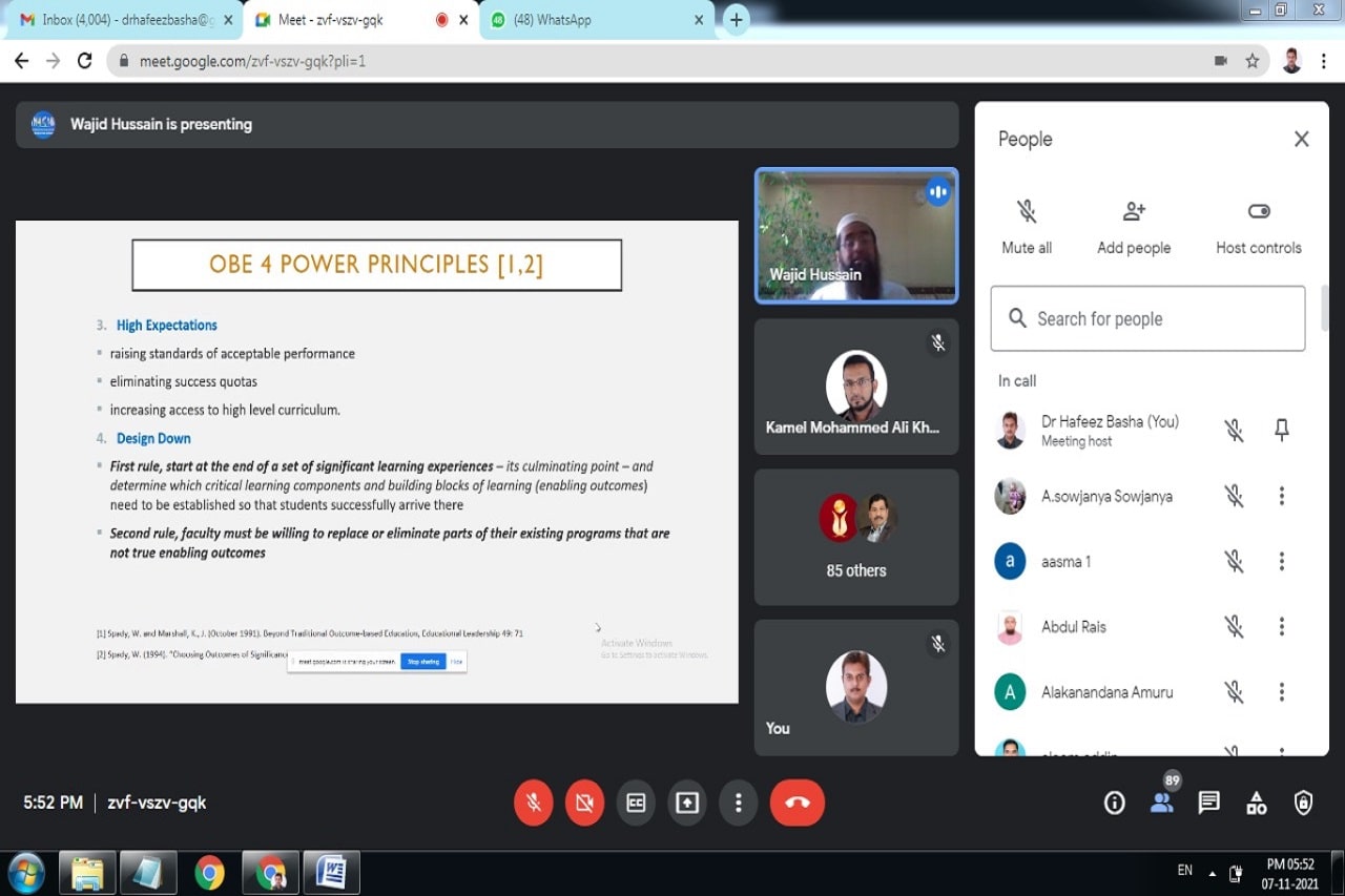 Chief Guest / Resource Persons: Dr. Fong K. Mak, Professor – Gannon University, USA; Dr. Wajid Hussain, Director – Islamic University of Madinah, Saudi Arabia; Dr. Suresh Kumar, Dean – Faculty of Engineering, Osmania University, Dr. C. V. Narasimhulu, Principal; Dr. R. Hafeez Basha, Dean IQAC; Dr. Mohd. Jabirullah, Autonomous Coordinator; Dr. Ch. Santhan Kumar, Accreditations & Ranking Coordinator; Mr. R. Suman, Course File Coordinator