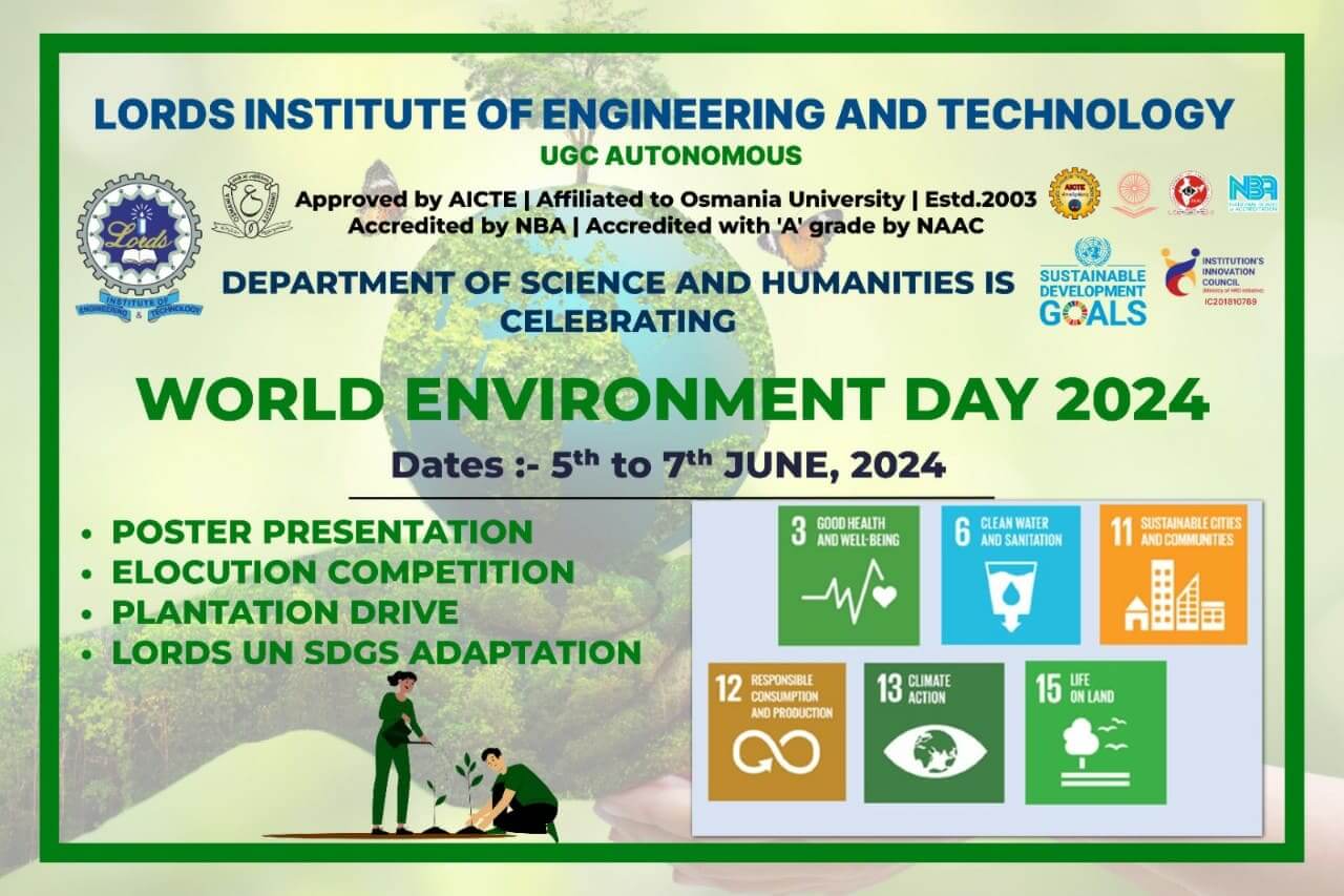 Description: Lords Institute of Engineering and Technology celebrated World Environment Day from 5th June to 7th June 2024. This year’s theme for World Environment Day was, “Land Restoration, Desertification and Drought Resilience,” with the slogan “Our Land. Our Future. In this event, the critical need to heal our planet’s ecosystems was highlighted. Elocution competition, Poster presentation on Plastic free campus and increase in green cover was highlighted in the event.