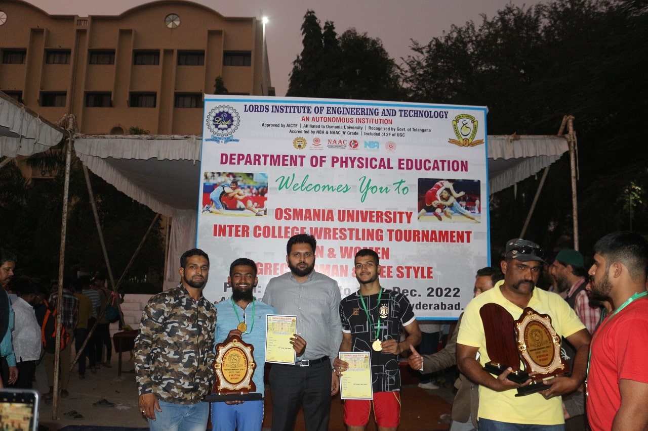 Lords Institute of Engineering and Technology hosted Inter college Wrestling Tournament for Men & Women (Greco Roman & Free Style) from 16th Dec to 17th Dec, 2022. Total 75 colleges took part in this tournament and 800+ wrestlers from various colleges participated.